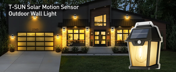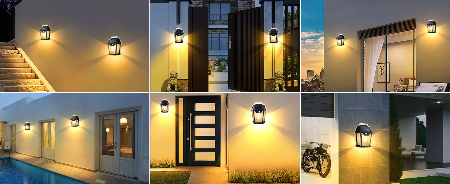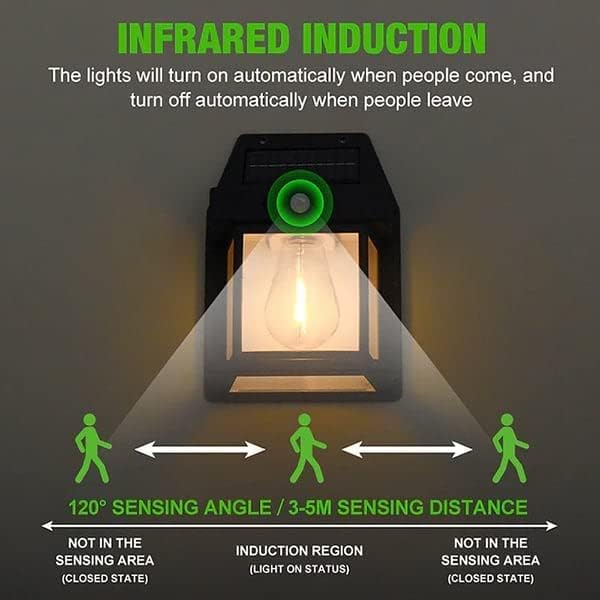 【New Solar Induction Wall Lamp】 The outdoor solar wall light has a sensitive dusk-to-dawn sensor that sensitively detects the brightness of the surrounding environment and automatically turns off at dawn and on at dusk. The Solar Dusk-to-Dawn Wall Light will keep working for up to 12 hours after fully charged during the day.