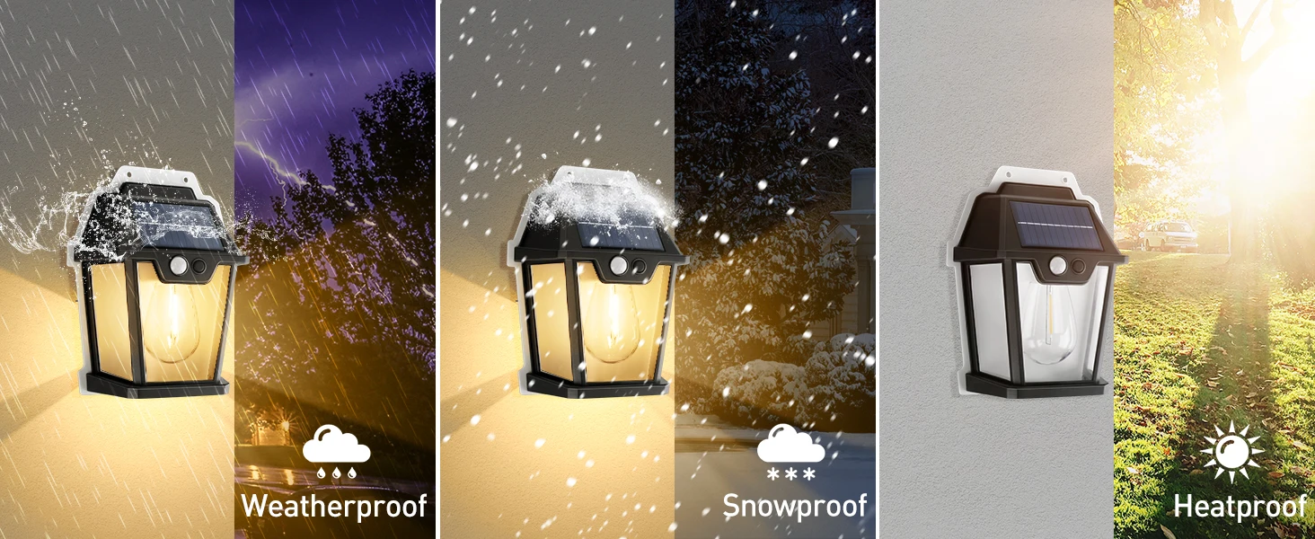 【Weather Resistant】 The outdoor solar wall light has a simple yet durable design and is made of high quality eco-friendly plastic material, this solar LED wall light is waterproof and can withstand rain, snow or other extreme weather conditions and is guaranteed to withstand inclement.