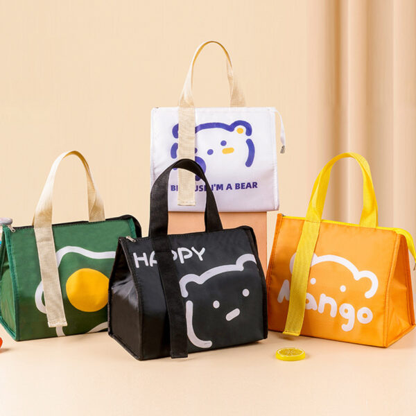 - What the large capacity cartoon lunch bag can offer you is that it could perfectly fit your lunch box, snacks, fruit or vegetable, so you can enrich your campus life and working time easier.